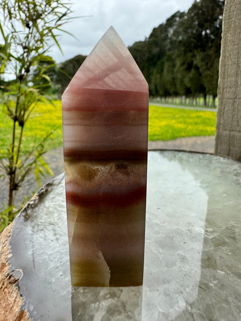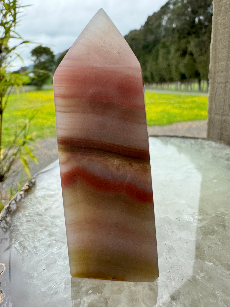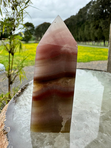 Aurora Agate is a mesmerizing and harmonious crystal known for its beautiful, multi-colored bands reminiscent of the aurora borealis. Its properties of harmony and balance evoke feelings of peace, emotional healing, and clear communication, making it a cherished ally for those seeking to restore equilibrium and express their true selves.