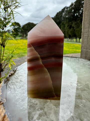 Aurora Agate is a mesmerizing and harmonious crystal known for its beautiful, multi-colored bands reminiscent of the aurora borealis. Its properties of harmony and balance evoke feelings of peace, emotional healing, and clear communication, making it a cherished ally for those seeking to restore equilibrium and express their true selves.
