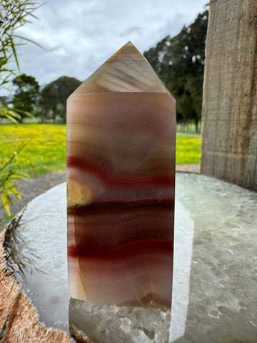 Aurora Agate is a mesmerizing and harmonious crystal known for its beautiful, multi-colored bands reminiscent of the aurora borealis. Its properties of harmony and balance evoke feelings of peace, emotional healing, and clear communication, making it a cherished ally for those seeking to restore equilibrium and express their true selves.