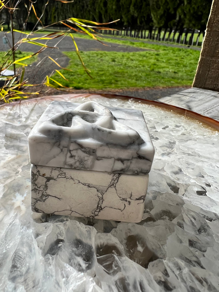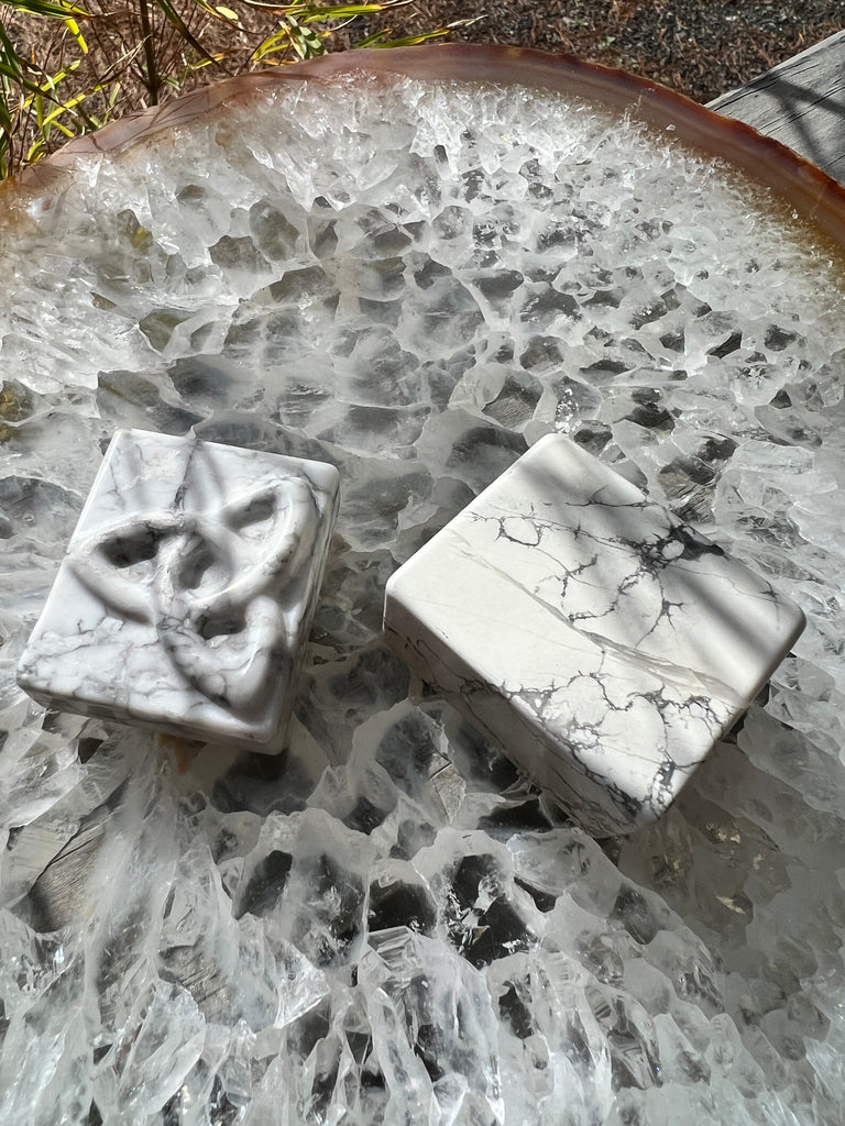 Howlite is a white or gray stone with unique grey veins that has a calming energy. It is often used to reduce anxiety, tension, and stress, promoting a sense of calmness and tranquility. It is also believed to stimulate awareness and encourage emotional expression, making it an excellent tool for those who struggle with communication or confrontations.
