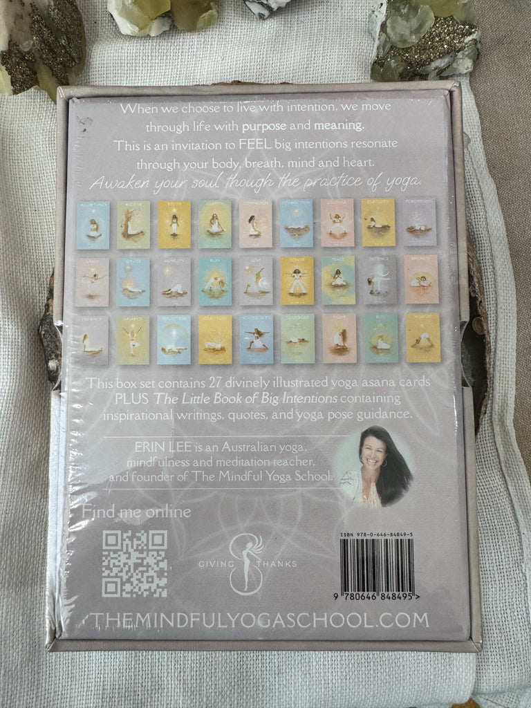 This bundled box set contains 27 divinely illustrated yoga asana/intention cards PLUS the full-colour book The Little Book of Big Intentions full of inspirational writings, quotes, yoga pose illustrations and step-by-step instructions for pose alignment. This is an invitation to FEEL big intentions resonate through your body, breath, mind and heart - awakening your soul, through the practice of yoga. This box set is larger than most card decks (180mm x 140mm). Inside you'll find 27 divinely illustrated yoga asana cards, supporting you to embody each intention PLUS The Little Book of Big Intentions full of inspirational writings, quotes, yoga pose illustrations and step-by-step instructions for pose alignment.