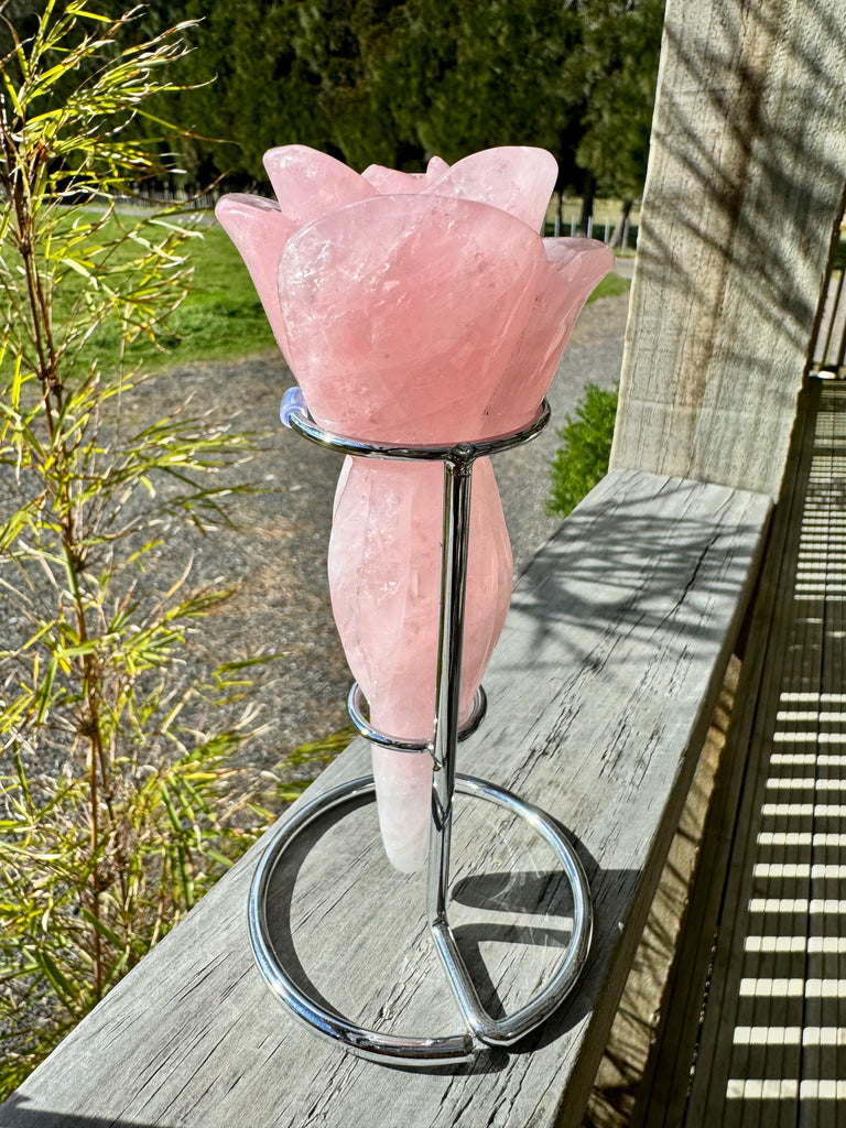 Rose Quartz is a beautiful crystal created through the bonding of Clear Quartz with precious metals, resulting in a delicate and enchanting pink hue. This crystal resonates with the loving energies of the Heart chakra, offering profound healing and support in matters of the heart.