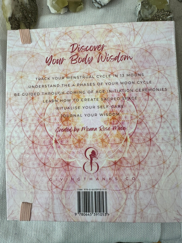 Discover your Body Wisdom Deepen your wisdom as you track each moon in your 13 Moon cycle. Learn how to Celebrate your Womanhood with Ceremony and Self care rituals. Harness your Power by Connecting to Nature and her rhythms. This Sacred Moon Journal is a sacred place to record your Awakenings as you connect to your Body Wisdom.