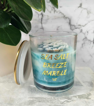 A breath of fresh coastal air, captured in wax. This marbled candle blends earthy wood sage with the crisp, mineral notes of sea salt, creating a fragrance that is both grounding and invigorating. The swirling marbled design makes each candle a one-of-a-kind piece—just as beautiful to look at as it is to burn.