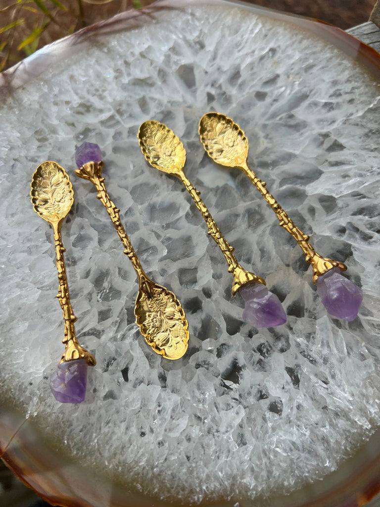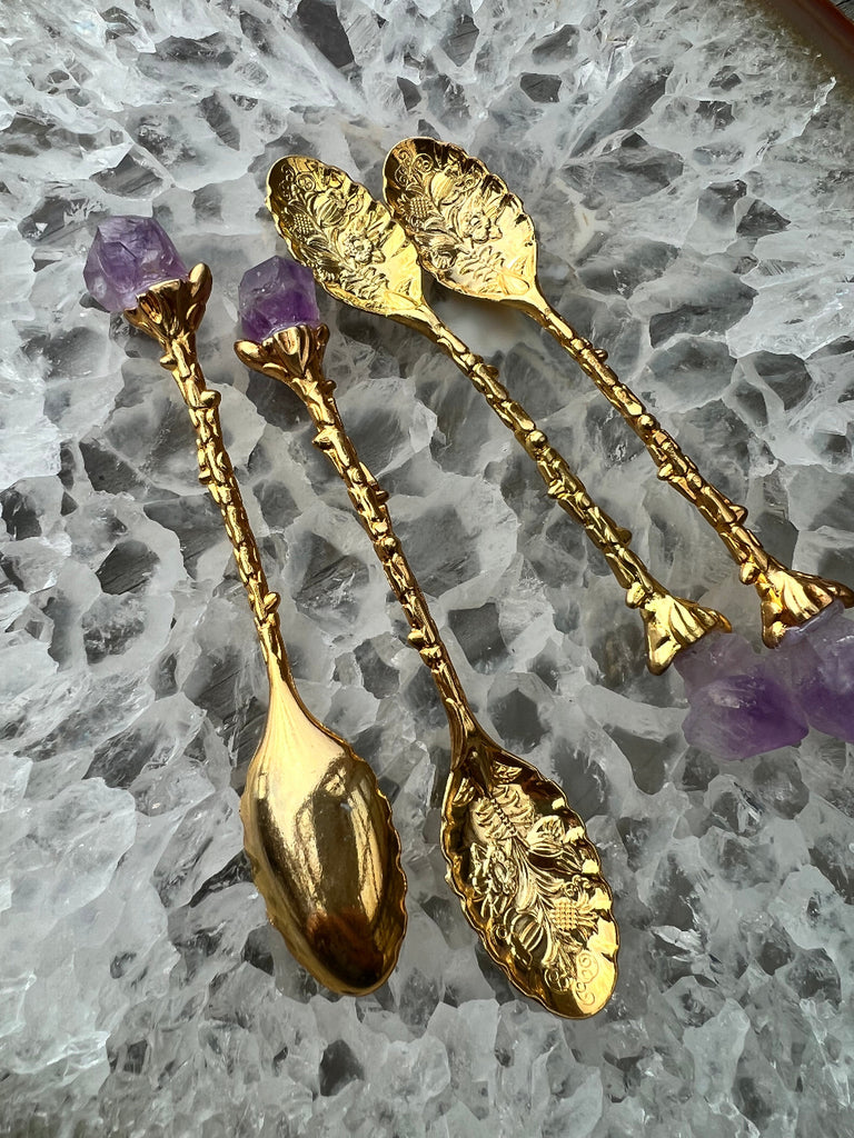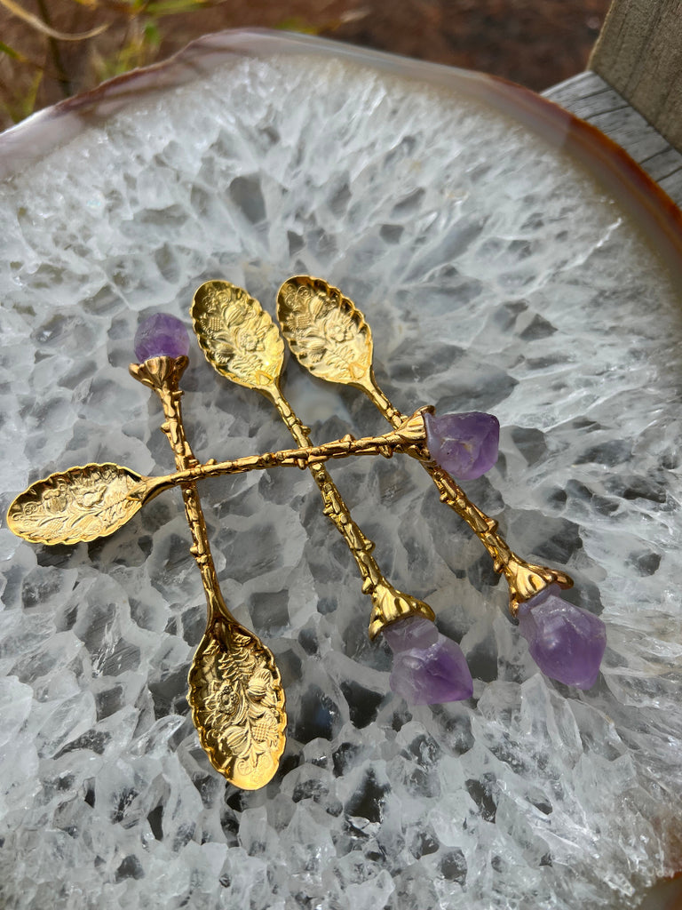 Amethyst Flower Spoon | Gold